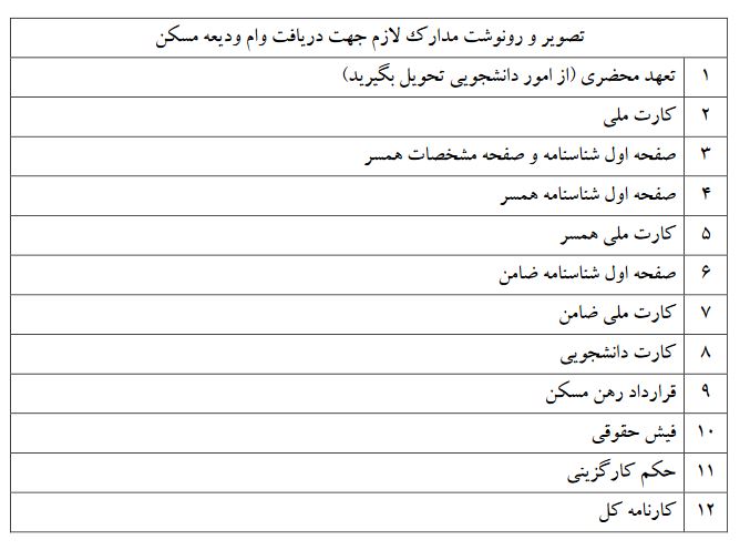 - 2- وام ودیعه مسکن در زمان فارغ التحصیلی و بصورت غیرقابل تقسیط تسویه میگردد.