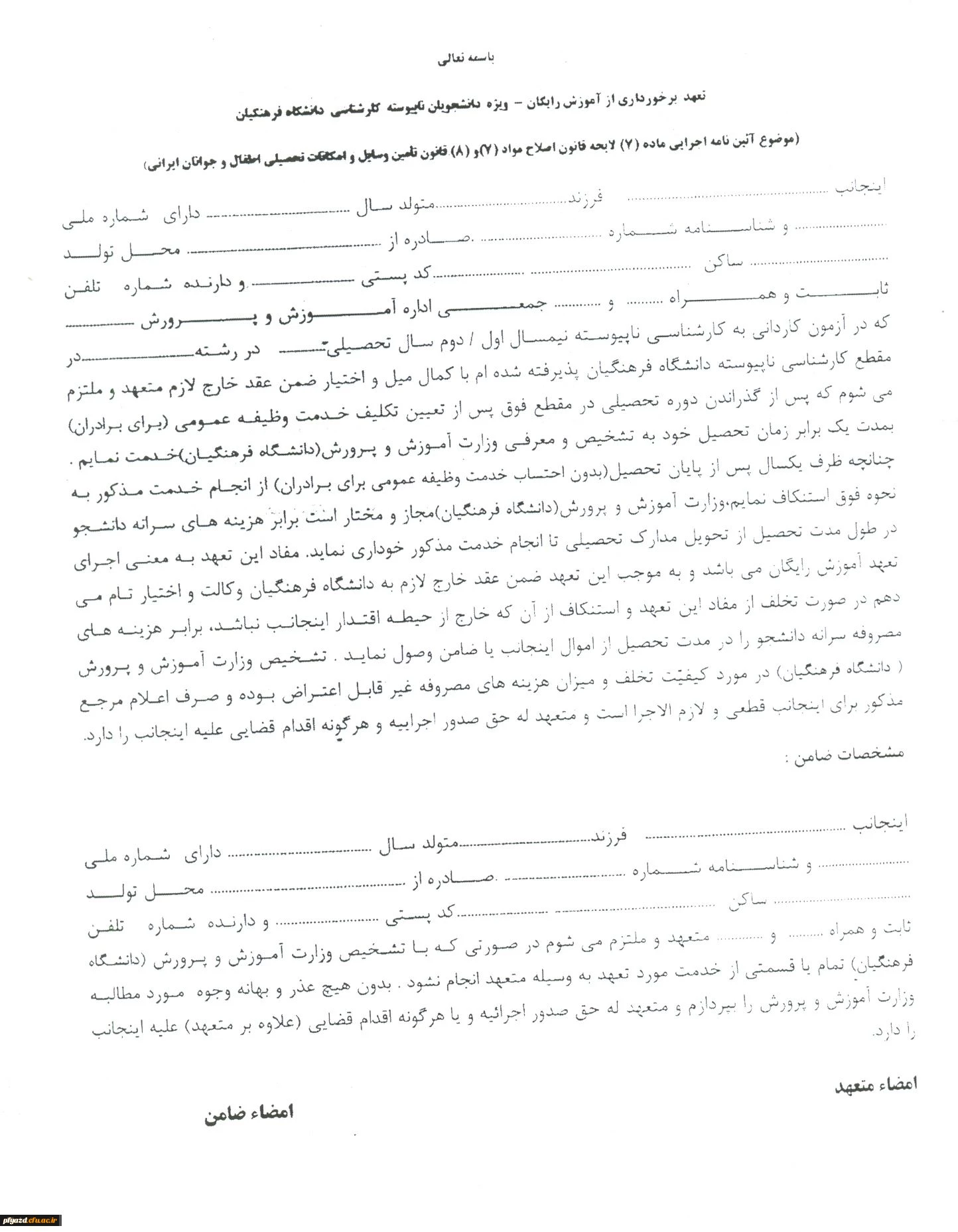 تعهد نامه آموزش رایگان