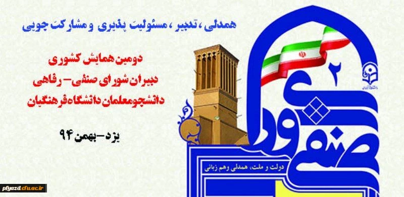 امتیاز دهید : دومین همایش کشوری دبیران شورای-صنفی رفاهی دانشجومعلمان دانشگاه فرهنگیان 3 دوشنبه 12 بهمن 1394 ساعت 10:35