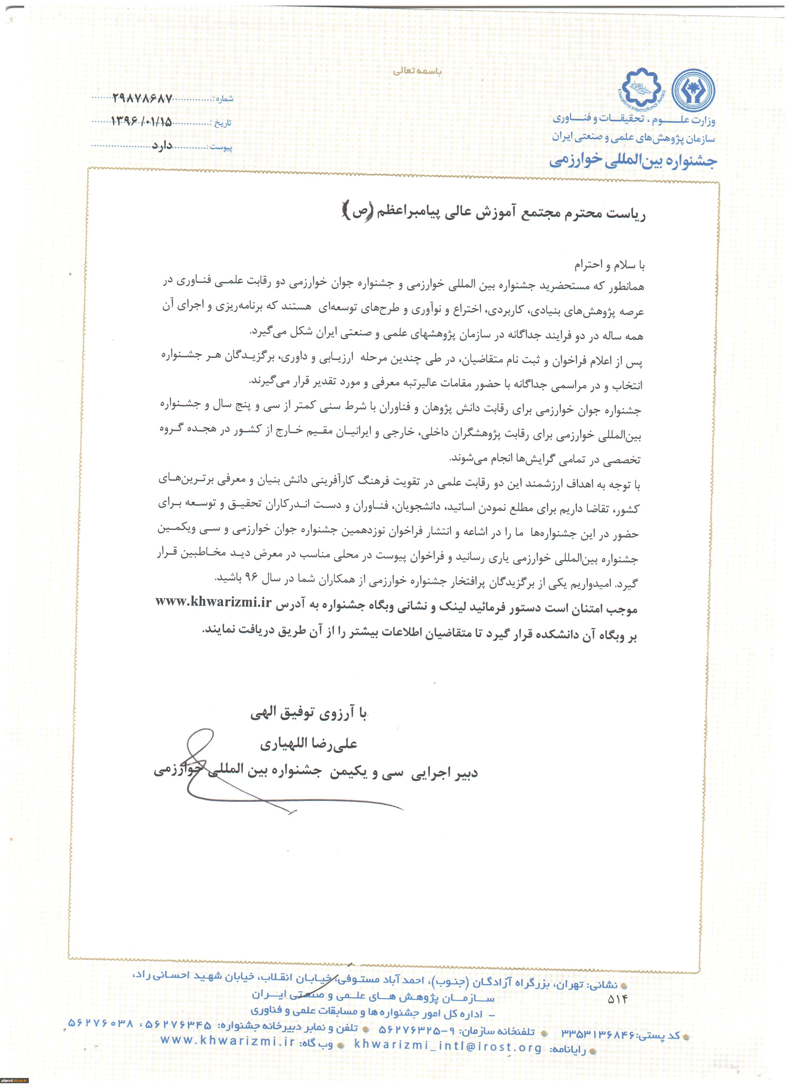 فراخوان 31مین دوره جشنواره بین المللی خوارزمی 2