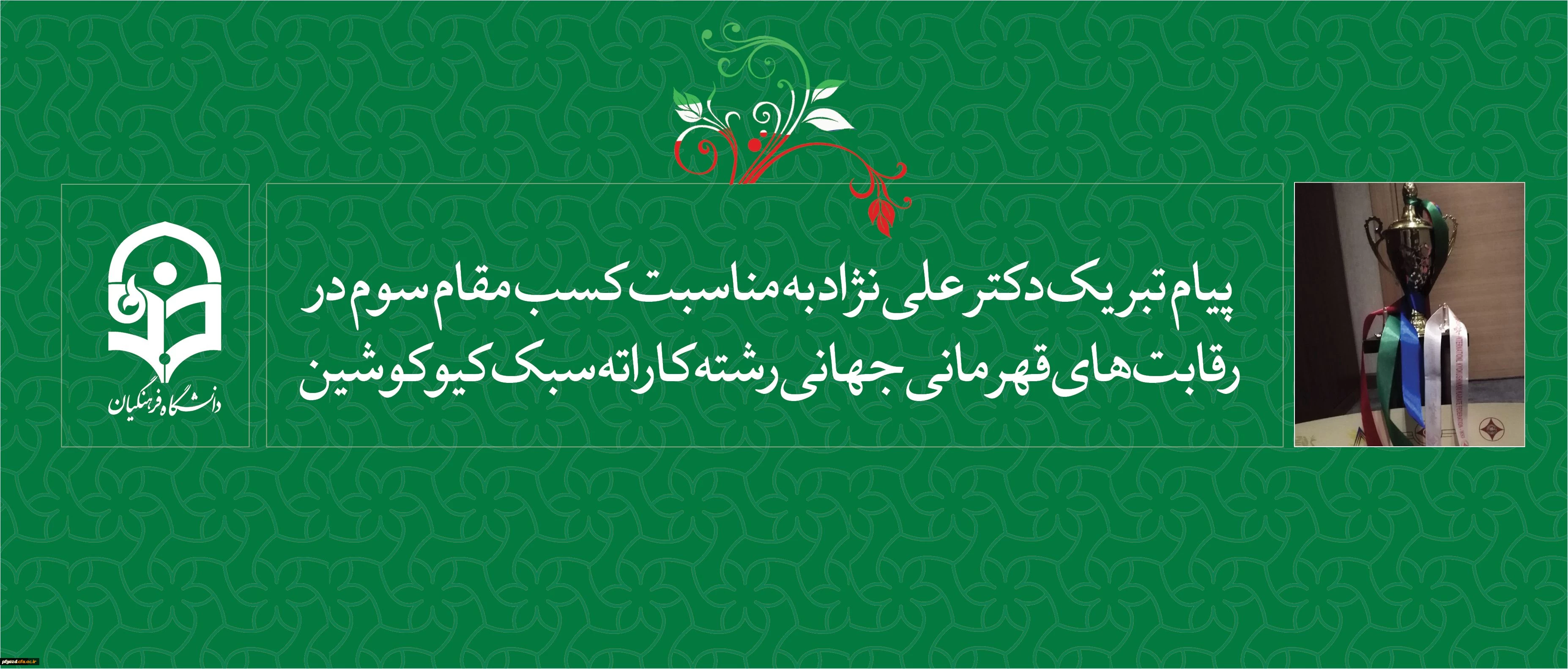 پیام تبریک دکتر علی نژاد به مناسبت: کسب مقام سوم در رقابت های قهرمانی جهانی رشته کاراته سبک کیوکوشین (باکو 2018) 2