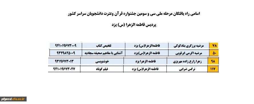 اسامی راه یافتگان مرحله ملی سی و سومین جشنواره قرآن وعترت دانشجویان سراسر کشور 4