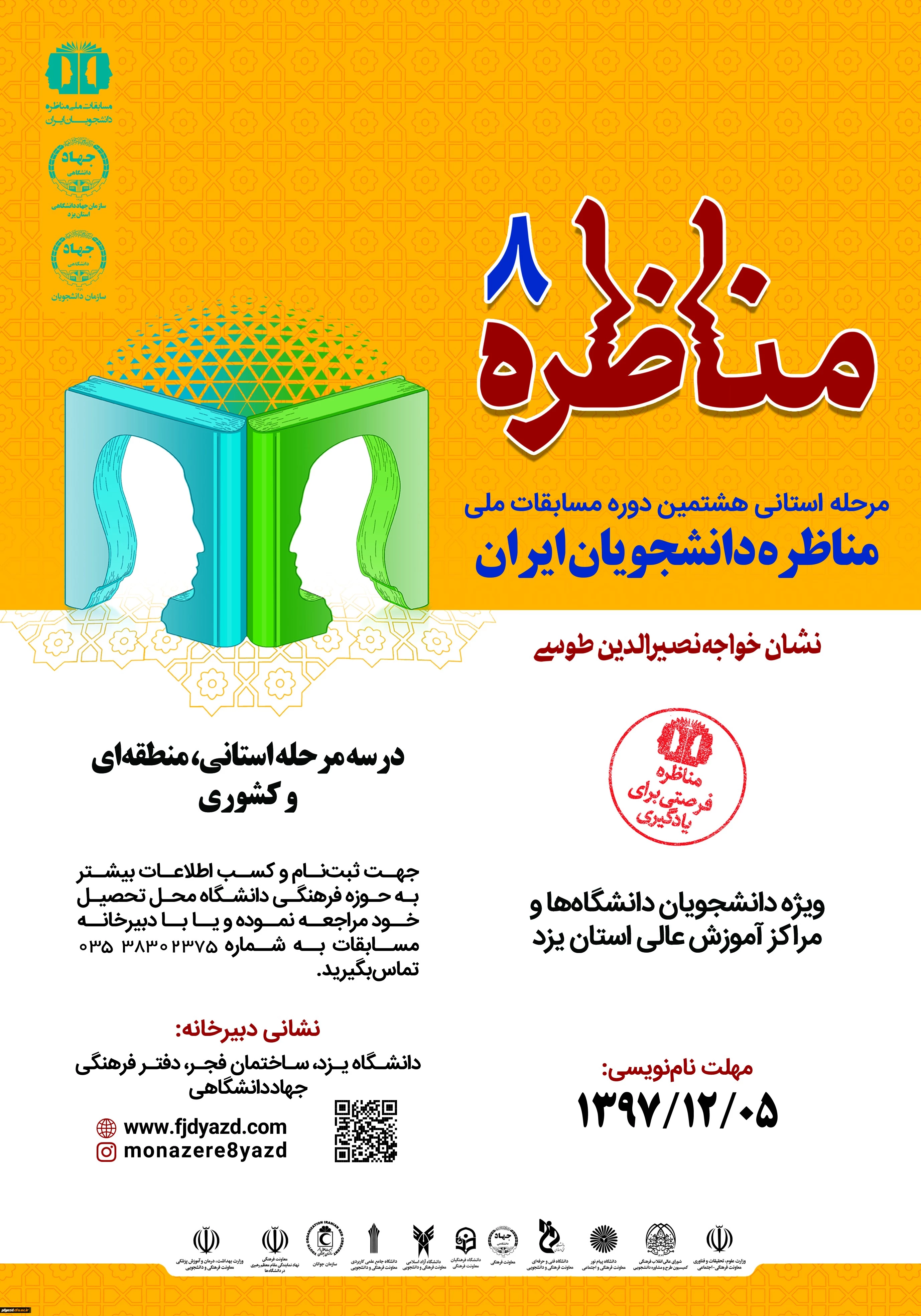 امتیاز دهید : مرحله استانی هشتمین دوره مسابقات ملی مناظره دانشجویان ایران 2 شنبه 4 اسفند 1397 ساعت 8:25