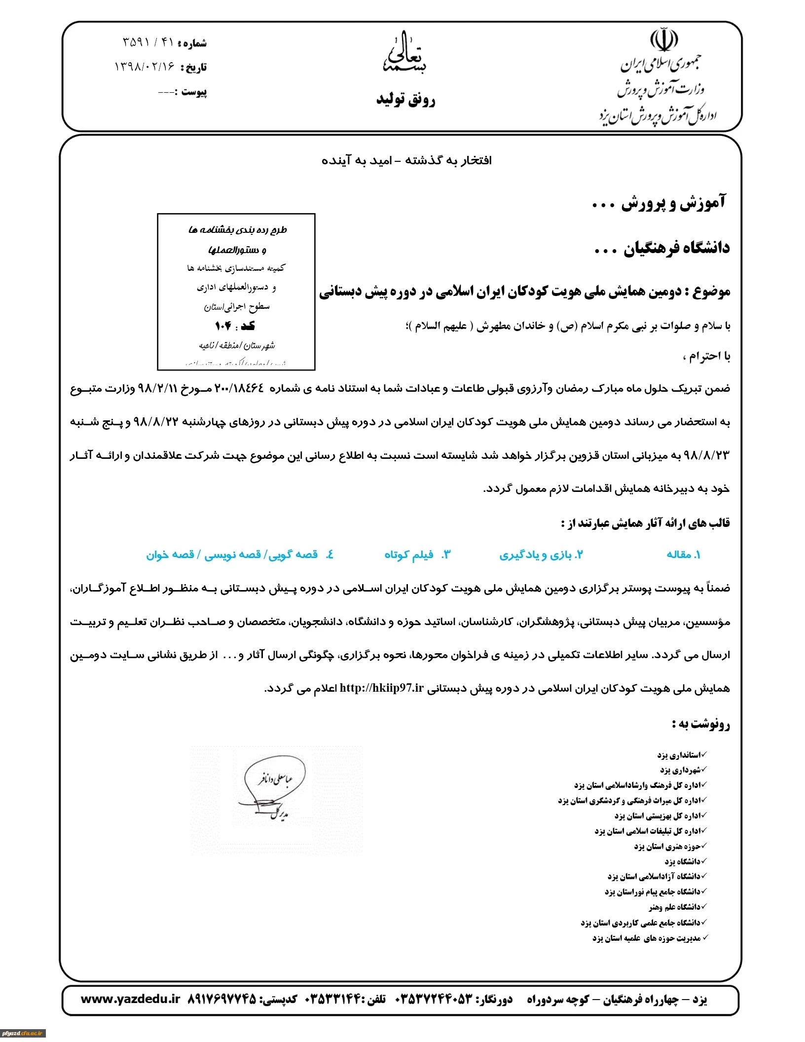 نهاد نمایندگی مقام معظم رهبری در دانشگاه فرهنگیان یزد