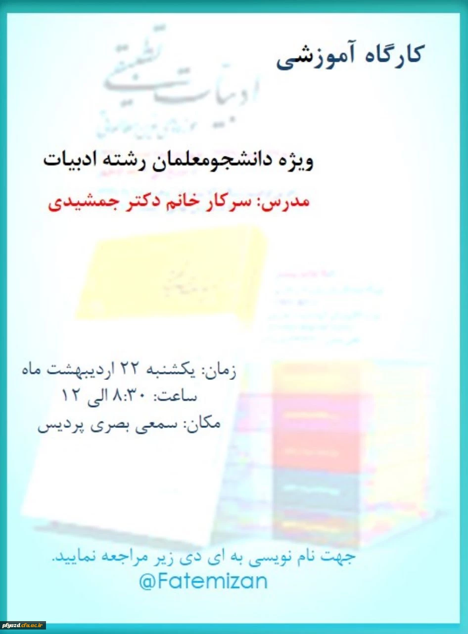 امتیاز دهید : کارگاه ادبیات تطبیقی ویژه دانشجومعلمان رشته ادبیات 3 دوشنبه 23 اردیبهشت 1398 ساعت 12:12