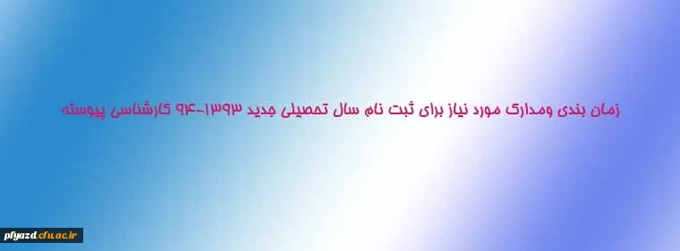 زمان بندی ومدارک مورد نیاز برای ثبت نام سال تحصیلی جدید 94-1393 کارشناسی پیوسته 2