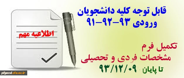 امتیاز دهید : ضرورت تکمیل فرم مشخصات فردی و تحصیلی برای کلیه دانشجویان 2 چهارشنبه 6 اسفند 1393 ساعت 12:01