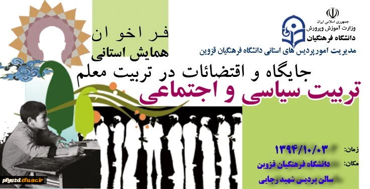 امتیاز دهید : همایش استانی " تربیت سیاسی و اجتماعی" : جایگاه و اقتضائات در تربیت معلم 2 یکشنبه 8 شهریور 1394 ساعت 12:49